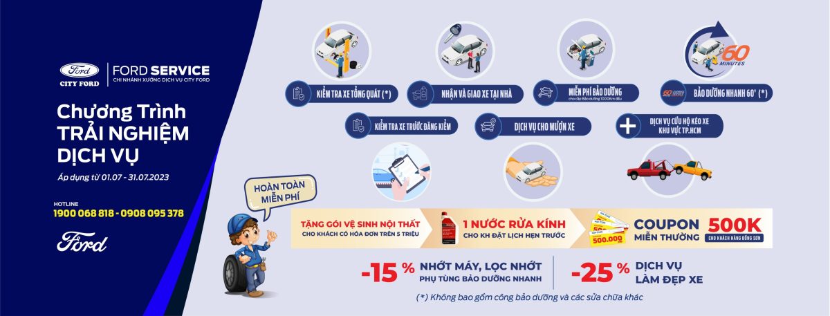 XƯỞNG DỊCH VỤ CITY FORD triển khai chương trình TRẢI NGHIỆM DỊCH VỤ Từ 01.07...