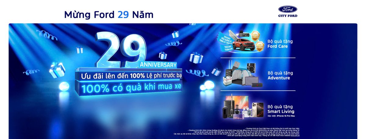 MỪNG FORD 29 NĂM – 100% QUÀ TẶNG CHO TẤT CẢ KHÁCH HÀNG MUA XE...