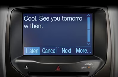 SYNC™ có thể đọc to tin nhắn văn bản qua loa xe. Nhờ vậy mắt bạn luôn tập trung vào lộ trình phía trước. SYNC™ thậm chí có thể hiểu được các biểu tượng cảm xúc và chữ viết tắt thông thường. Bạn có thể dừng xe và gửi nhanh một tin nhắn hồi đáp, chỉ việc chọn một trong số các mẫu tin nhắn có sẵn.