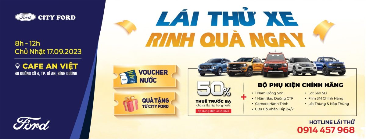 Bạn đang muốn trải nghiệm các dòng xe Ford Thế Hệ Mới? Đây chính là cơ hội dành cho bạn. Đến với chương trình, bạn sẽ được tư vấn, lái thử nhận quà và lựa chọn các ưu đãi khi mua xe tại City Ford như:
