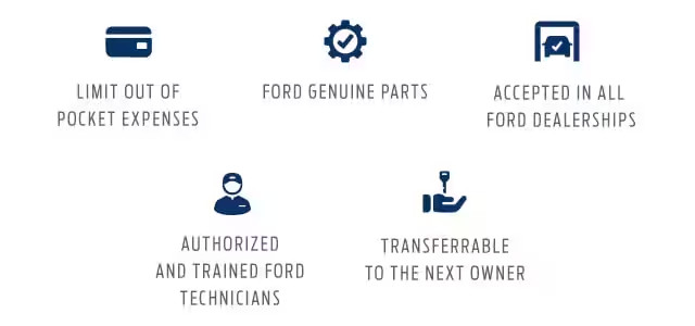 Phạm vi | Bao gồm các phụ tùng về động cơ, hệ thống điện trên xe và nhân công | Bao gồm các phụ tùng bảo dưỡng và nhân công như trong lịch bảo dưỡng định kỳ của xe Ford | Bao gồm phụ tùng dầu động cơ và lọc dầu nhớt |