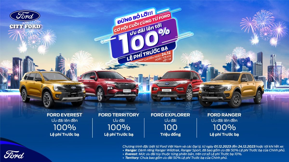 ĐỪNG BỎ LỠ CƠ HỘI CUỐI CÙNG TỪ FORD – ƯU ĐÃI 100% LỆ PHÍ TRƯỚC BẠ ĐẾN 24.12.2023