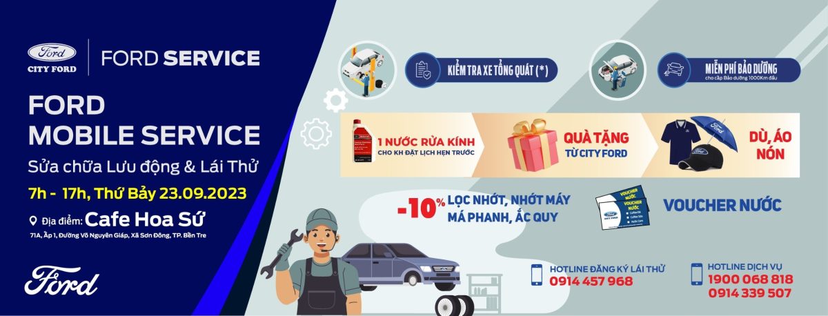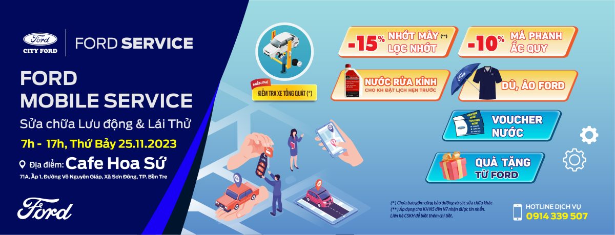 MOBILE SERVICE TẠI BẾN TRE Bảo dưỡng lưu động tại Bến Tre cùng City Ford...